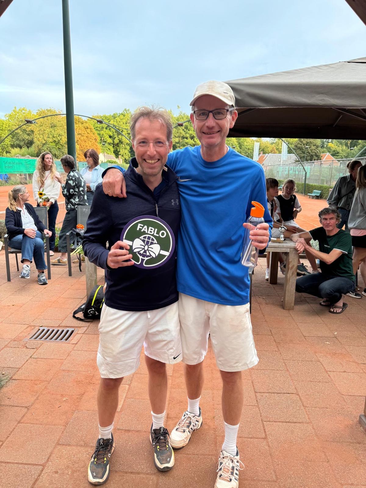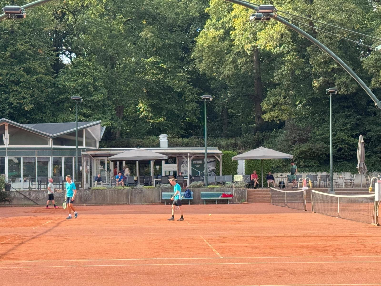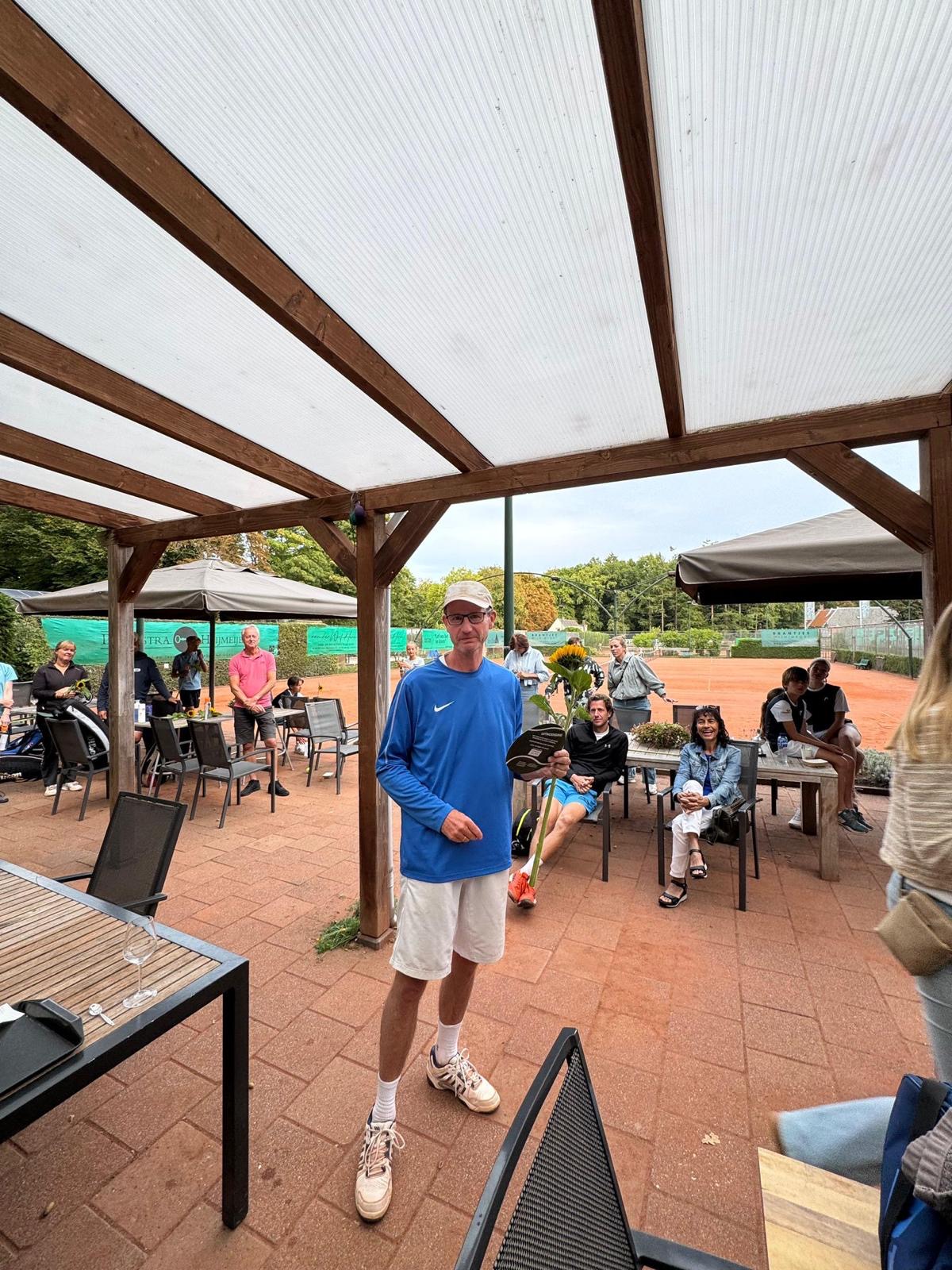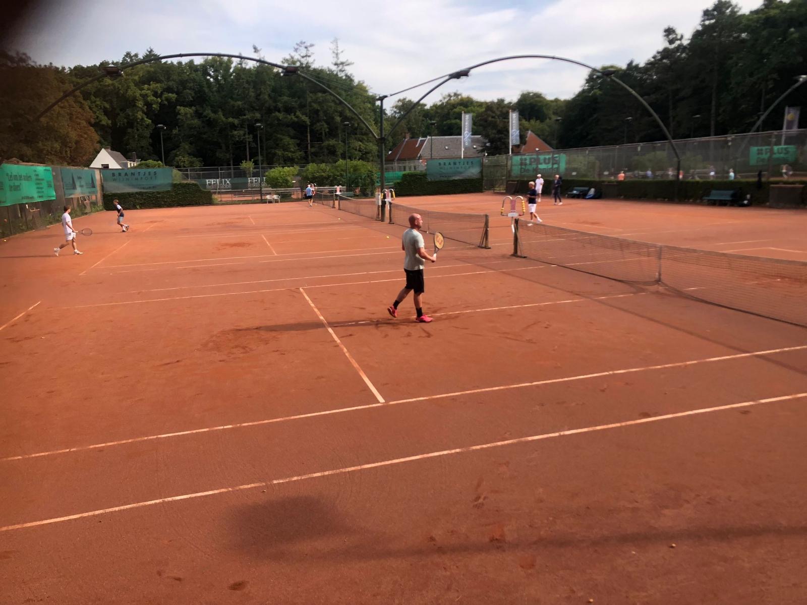 Zoals verwacht liet het weer ons niet helemaal met rust. Met name woensdag- en donderdagavond vielen letterlijk in het water; vrijwel alle geplande wedstrijden moesten worden afgelast. Dat zorgde voor een volle planning aan het einde van de week, maar dankzij de flexibiliteit van de spelers en de inzet van de organisatie werd alles toch in goede banen geleid. En eerlijk is eerlijk: het was het allemaal waard, want er gaat niets boven tennissen op de mooie gravelbanen, midden in het prachtige Groenendaalse Bos.