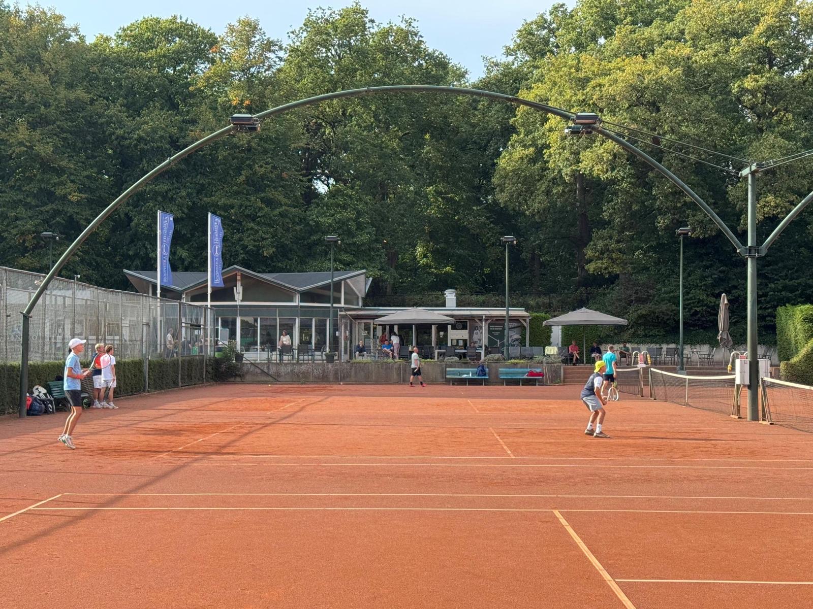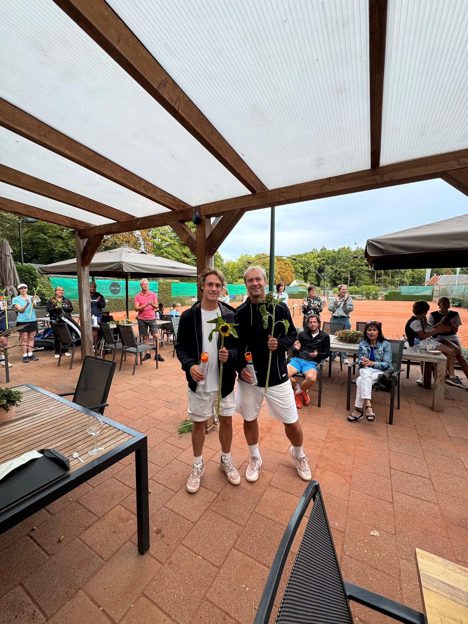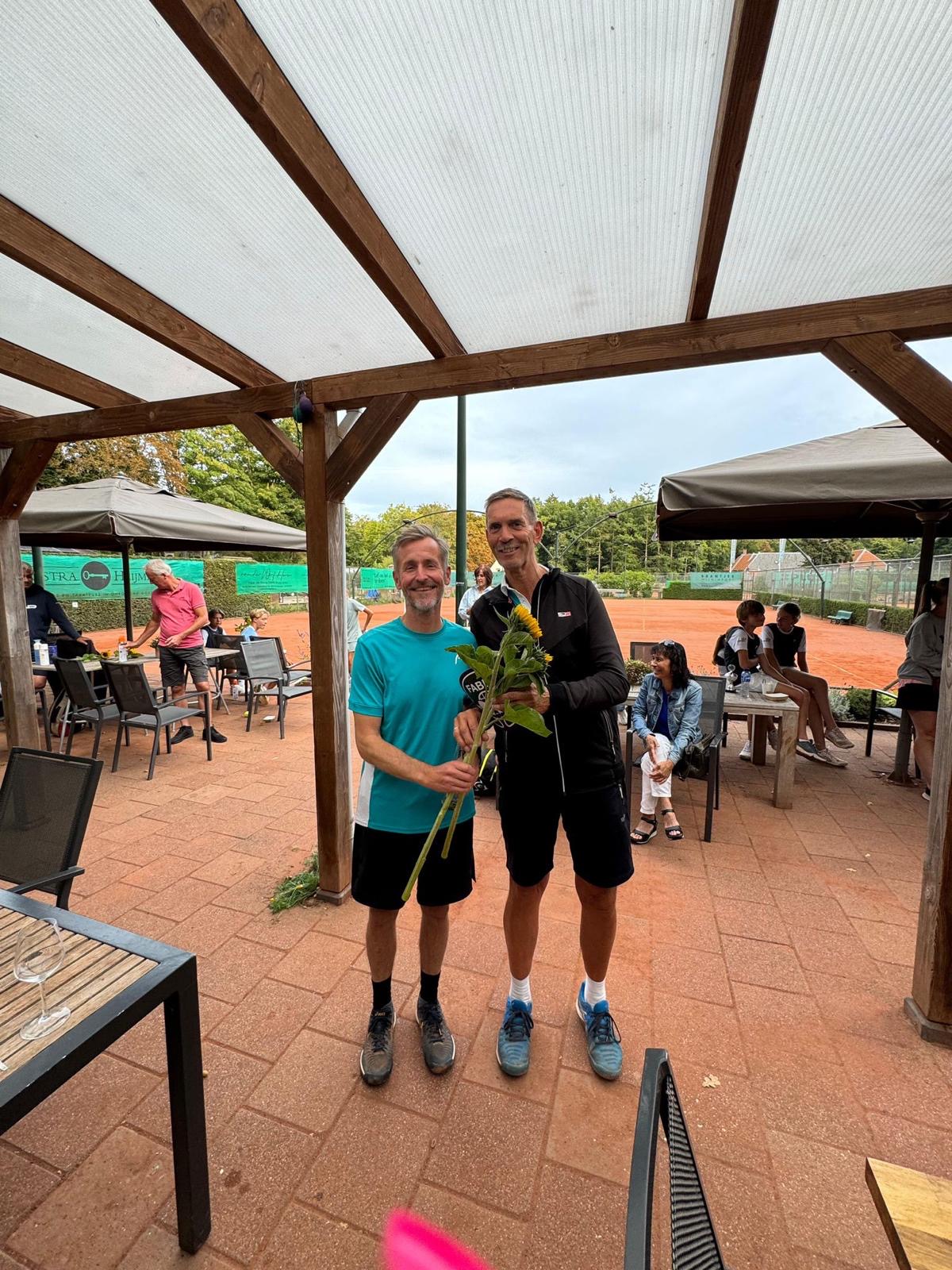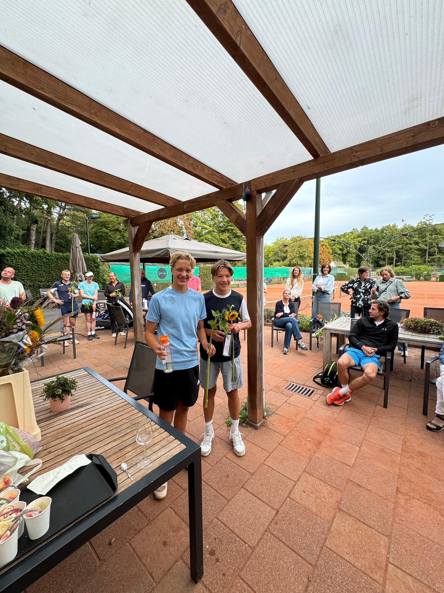 Zoals verwacht liet het weer ons niet helemaal met rust. Met name woensdag- en donderdagavond vielen letterlijk in het water; vrijwel alle geplande wedstrijden moesten worden afgelast. Dat zorgde voor een volle planning aan het einde van de week, maar dankzij de flexibiliteit van de spelers en de inzet van de organisatie werd alles toch in goede banen geleid. En eerlijk is eerlijk: het was het allemaal waard, want er gaat niets boven tennissen op de mooie gravelbanen, midden in het prachtige Groenendaalse Bos.