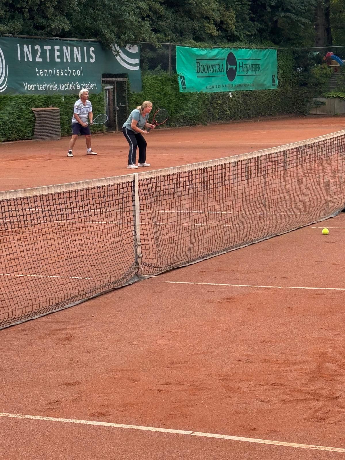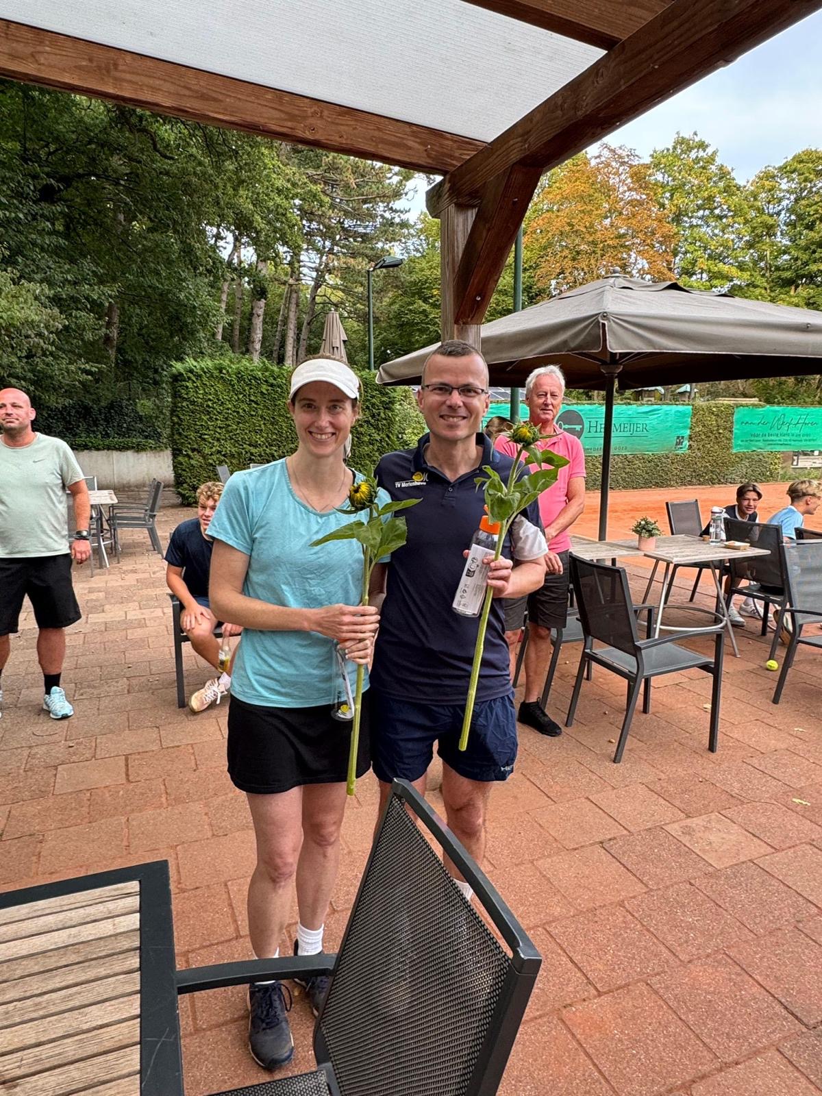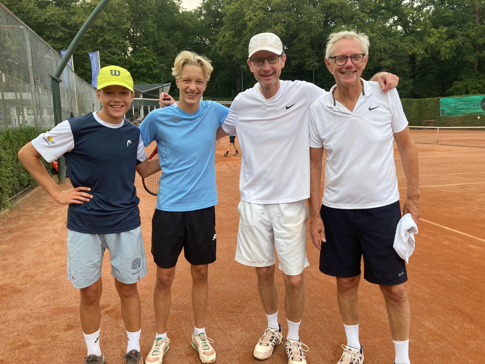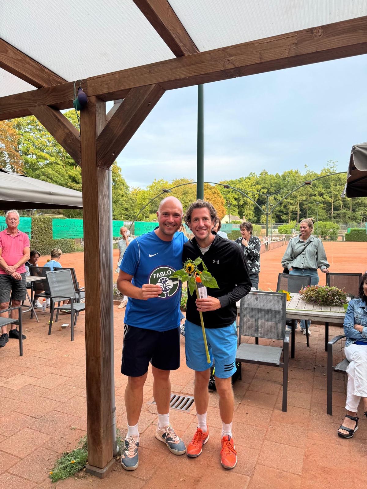 Zoals verwacht liet het weer ons niet helemaal met rust. Met name woensdag- en donderdagavond vielen letterlijk in het water; vrijwel alle geplande wedstrijden moesten worden afgelast. Dat zorgde voor een volle planning aan het einde van de week, maar dankzij de flexibiliteit van de spelers en de inzet van de organisatie werd alles toch in goede banen geleid. En eerlijk is eerlijk: het was het allemaal waard, want er gaat niets boven tennissen op de mooie gravelbanen, midden in het prachtige Groenendaalse Bos.