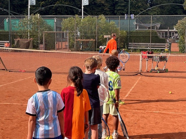 Vandaag kwamen 28 leerlingen van groep 4 van de Voorwegschool op bezoek. Ze kregen een clinic van Philip, Michel en Mick. Prachtig weer, enthousiaste kinderen (“ ik wil ook op tennis!”) en verhitte gezichten. Na afloop een raketje en toen weer snel naar school.